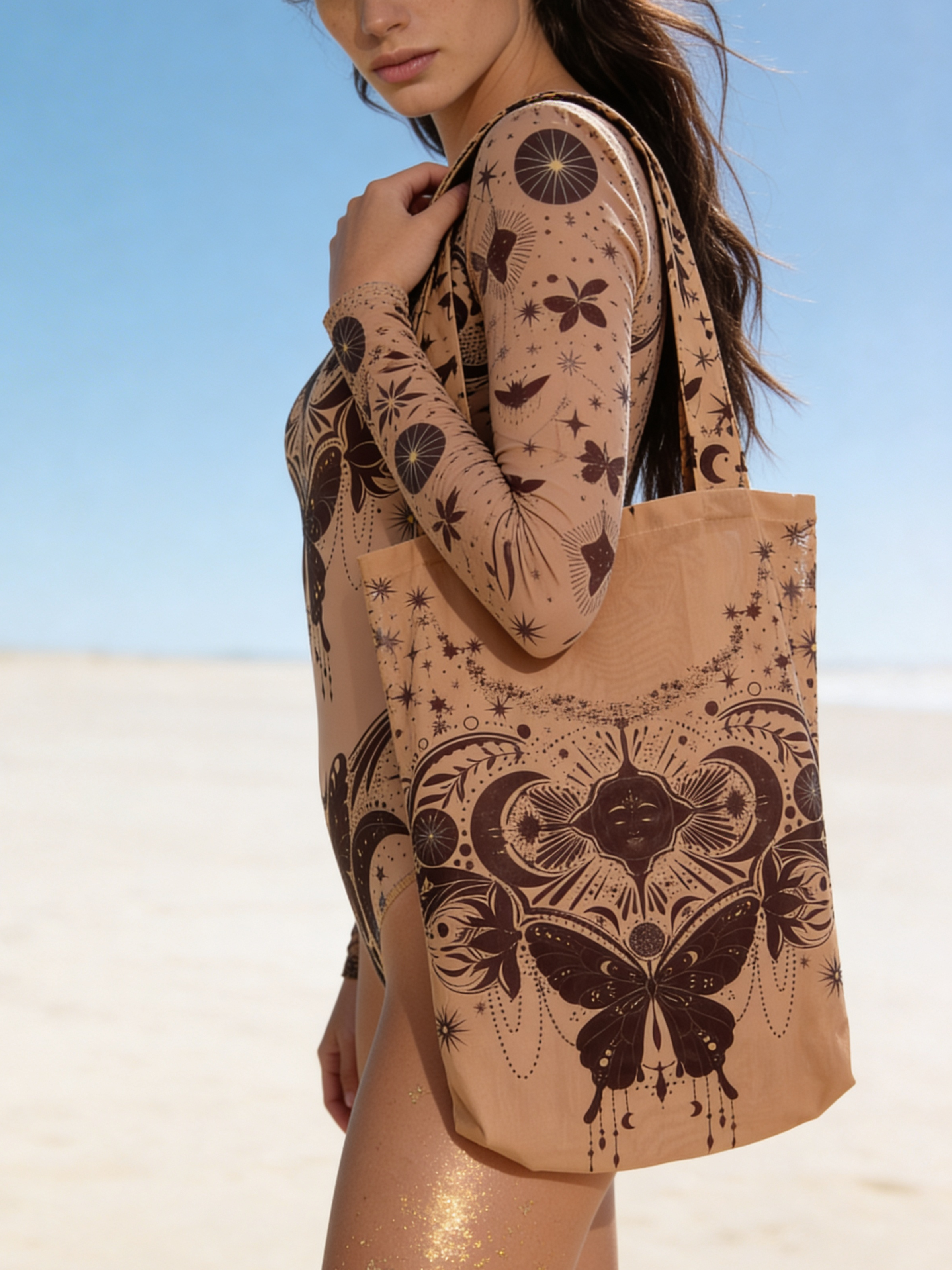 Стильный принт и универсальность материала делают этот шоппер идеальным для летних прогулок и походов на пляж.